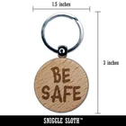 Be Safe Fun Text Engraved Wood Round Keychain Tag Charm