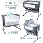 Adjustable Portable Bed for Infant/Baby(Deep Grey) Safe and comfortable - This baby bassinet can be used as a baby cradle or bedside sleeper attached to adult bed, mesh of two-side makes baby feel breathable and comfortable 5 height positions--from the floor to the bottom of the bassinet(mattress),min16.9'',max20.8'', suit for most adults' beds Easy to install - This bedside sleeper meets all US safety regulations on the assembly of side and horizontal cradle with clear instructions, and no tools are needed during installation What is included - The product comes with a detachable mosquito net and mattress(mattress Size:33''x19'') Suitable from Birth to 5-months/33lbs or until baby can pull themselves into an upright position. LIKE NEW - MISSING ORIGINAL BOX LOCAL PICK UP AVAILABLE (Metro Detroit Only)