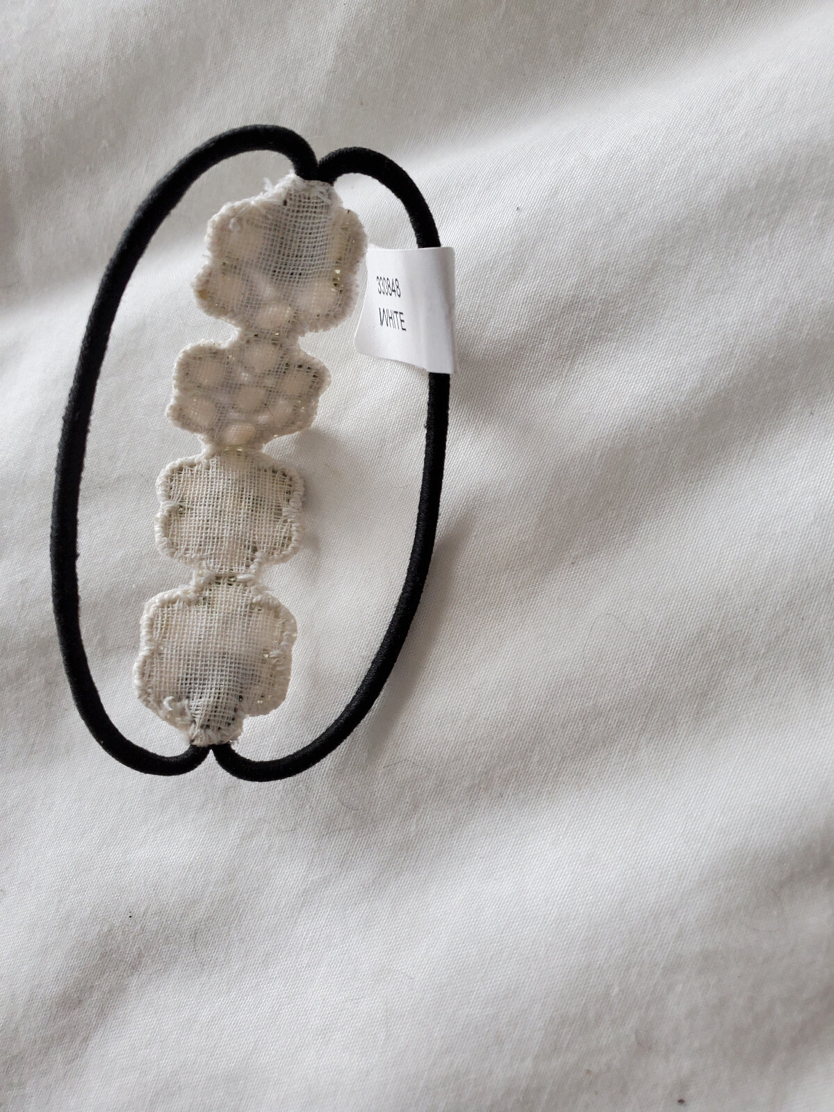 Black Elastic Hair Tie with Soft Silver Beads