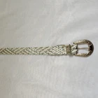 Belt Women 37.5 inches White Silver Metallic Braided Silver Floral Ornate Buckle - Pre-Owned in Very Good Condition - Measurements Length - 37 1/2 in Width - 1 in - Returns acceptable within 30 days of purchase unworn, in original condition - Check out my E-bay Store. Lots of Choices Available. Reduced shipping for 2 or more items. Let me know before you pay so I can send you an invoice to discount the shipping