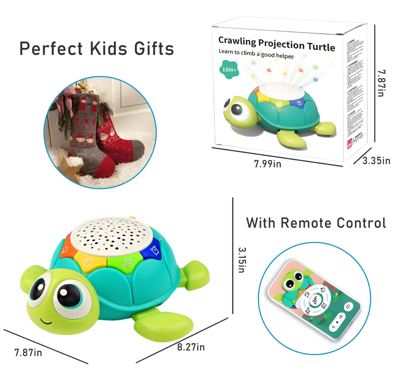 5 In 1 Crawling Baby Musical Toys Perfect baby toy that can play from birth as newborn toys to age 2 years old as toddler toys age 1-2. This is a Baby toys 0-6 6-12 12-18 months developmental in cute little turtle shape. The baby musical toys with 5 kinds of sound and music mode. Crawling with rhythmic music, then babies will follow crawling or walking that have tummy time. With Remote Control that parents can control the baby toy through the remote control, play with baby and enjoy the fun of parent-child interaction. The best fun educational toy for your baby learning and crawling. 【Amazing Baby Toys with Remote Control】-- Are you find some infant toys, newborn toys, baby toys 0-6 months, 3-6 month toys, which can accompany babies from birth to early infancy? Look this Musical Turtle Projector Crawling Toys. The lullabies mode is good infant toys 0-3 months to make the baby's sleep sweeter. The crawling toys mode can encourage baby to crawl and walking for baby toys 6-12 months. 5 natural songs, 10 songs and 4 kinds projected lights is good baby toys 12-18 months, also good toys for 1 Year Old Boy Girl. Perfect baby toy, newborn toys toddler toys age 1-2. 【Crawling Toys Encourage Baby to Crawl /Walking】-- Is your baby reluctant to crawl or walk? Just get this turtle crawling crab 6 month old baby toys. Press the little tortoise button, it will move, nod heads, and play songs and music with LED lights. It will attract your baby to chase and crawl. Perfect baby toys to develop gross motor skills and learn how to control large muscles which enable walking and body balance when playing. Ideal baby toys 6 to 12 months, 6 month old toys, 5 7 month old baby toys, baby girl gifts & baby boy gifts. 【Baby Musical Toys with Natural Sounds and Songs】-- This toys for babies 6-12 months 6 9 10 month old baby toys come with 5 kinds of natural sounds and songs music. You can press the change-over button to change sounds or music mode. The baby musical toys can help develop the brains of babies 6 9 12 18 months. And our musical toys for toddlers 1-3 has 2 levels of volume adjustment button to make the music softer or louder, what can protect toddlers’hearing. With the function like crab toys for babies, crawling crab baby toy. 【Stars Night Light Projector & Remote Control Design】-- This light up toy for babies 6-12 12-18 months can be easily press it and change 4 kinds of projected light by baby. All the images are clearly projected on the bedroom ceiling, which create warm night for baby boy girl toys 6 to 12 months, 4 month old toys for babies. The baby crawling toy is equipped with a remote control, you can use the remote control to stop it when it meets obstacles to ensure your baby's safety while playing. 【Safe & Valuable Tummy Time Baby Gifts】--This toys for ages 0-2 are made of great ABS material, BPA-Free, round smooth edges, safe newborn toys, infants toys, baby toys and toddler toys. Great one year old boy girl birthday gift, learning toys for 1 year old, baby boy girl toys 6 to 12 month, toddler toys age 1-2, 3 month baby toys. Requires 3 x AAA batteries (Not Included). A perfect baby toy that can play from birth as newborn toys to age 2 years old as toddler toys. 【Ideal Cute Gifts for Your Baby & Toddlers】-- This crawling crab baby toy develop baby’s colors & shape recognition skills, baby must haves for sit-to-crawl baby boys and girls 0-12 months, great 1 year old boy girl gifts, 6 month old toys baby girl toys. Also infant gift idea, easter treats stuffer, easter gift for baby toddlers kids, baby first birthday gifts & easter gift for 6 7 8 9 12-18 months girl boy, Christmas gifts for 3 6 9 12 18 months baby.