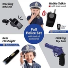 Kids Fireman and Policeman Role Play Costume Set, Firefighter Suit, Police Vest, Hats, Accessories DURABLE AND PERFECT FOR KIDS: The police costume for boys and girls is made from washable durable fabric suitable for an exciting toddler dress up police officer pretend playset IDEAL GIFT: This police officer costume for kids is useful for realistic, harmless, educational games which keeps children entertained & happy! Our inclusive policeman kids costume includes an 11 pcs police toy set. Ideal kids dress up clothes for play perfect for Christmas, Halloween, Birthday Party EXCELLENT QUALITY: Our kids police costume has the highest quality & has the safety standards your child deserve. This police costume for kids comes with kids police hat, police whistle, toy handcuffs, flashlight and walkie talkie w/ batteries, police baton, toy gun, police badge toy, name card and storage bag SUITABLE FOR KIDS AGES 3 & UP: This complete police dress up for boys and girls is made suitable for ages 3 and above. Make your little officer ecstatic with this toddler dress up clothes!