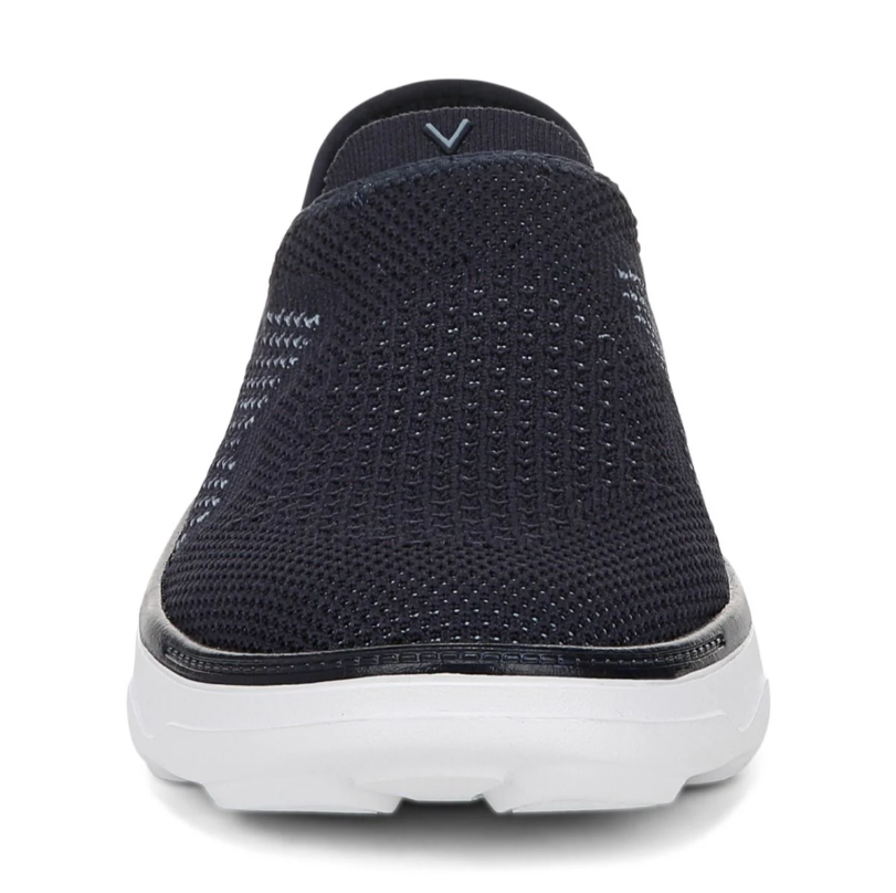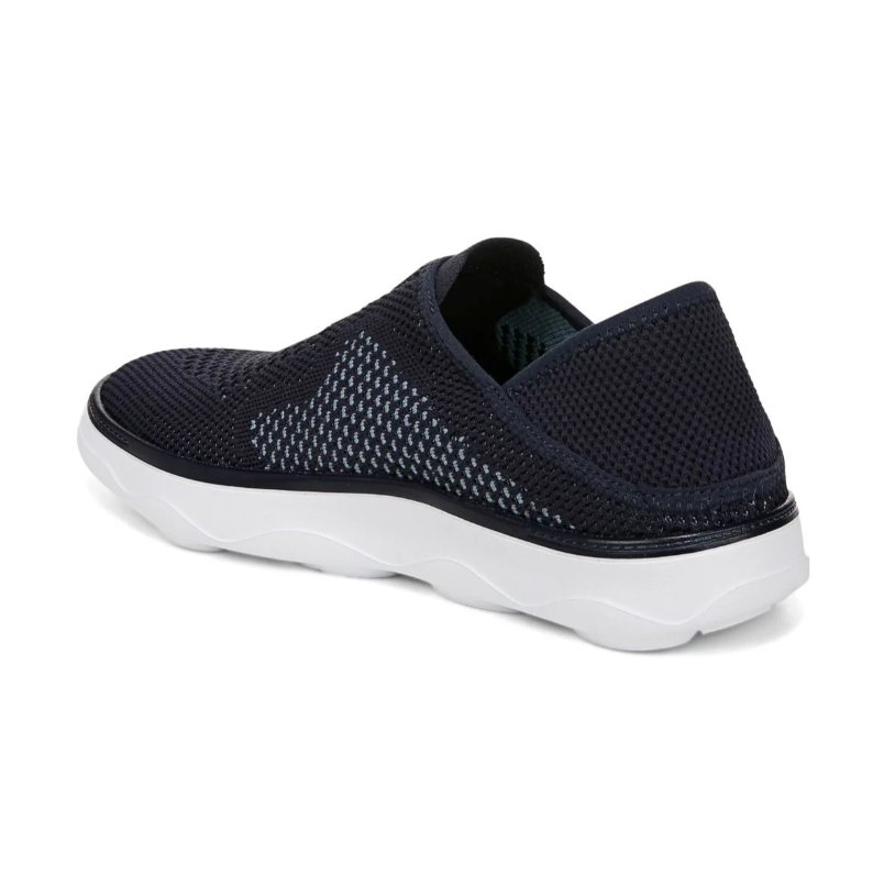 Best Seller Vionic Sage RX Recovery Slip On, Navy Blazer Description: Discover effortless recovery with the Sage RX Slip-On. Designed with your well-being in mind, this slip-on features a soft EVA massaging footbed that soothes with every step, while the breathable knit uppers offer extra stretch for a perfect fit. The versatile stretch knit convertible heel counter lets you wear it up or down, adapting to your recovery style. Whether you're at home or on the go, the Sage RX Slip-On brings you the comfort and care your feet deserve. Details: Upper: Breathable mesh fabric. Footbed: Removable EVA. Powered by VioMotion Technology, the dual-density foam footbed is engineered to maintain its shape and support without collapsing under pressure Heel Height: 1.25". Platform Height: 1.25". Outsole: Durable synthetic rubber. Received APMA Seal of Acceptance. Fit & Care: Available in women's whole and half sizes. Medium (B) widths, sizes 5, 6-10, 11, 12, 13. For the greatest comfort, we recommend wearing your new Vionic footwear for just a few hours for the first few days to allow your feet to adjust to the new level of orthotic comfort and support. Within one to two weeks you should find the product completely comfortable and supportive. To clean, wipe with damp cloth and air dry under indirect sunlight only. Do not submerge in water or use solvents to clean products. If your shoes become wet, please allow them to dry naturally.