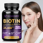Effects: Anti-Aging, Hair, Skin Health Ingredients: Biotin, Collagen, Keratin, MSM Directions: Take 2 capsules once daily after a meal. Shipping: Ships within 48 hours on working days. Shelf life: 2 years Description: Biotin Collagen and Keratin Supplement - An required mixture of biotin vitamins, collagen and keratin. Our Biotin for Men and Women nourishes your hair, skin and nails, reducing the signs of aging by replenishing your body with essential oxidants. Thicker, fuller, healthier hair, stronger nails, softer skin - Taking biotin with hyaluronic acid regularly can also help strong hair roots, increase strength, reduce breakage and split ends, and keep hair feeling softer, More energetic. It also solid nails and helps improve skin elasticity and firmness. The Power of Collagen, Keratin & Biotin Complex - Promoting thicker hair growth and overall beauty, our carefully formulated hair vitamins are designed to nourish your body from within. Leaves hair, skin and nails glowing. Document