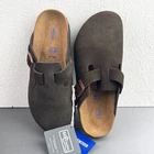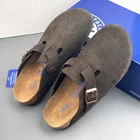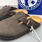Our most sought-after clog, the Boston lends a fashion-forward edge to any style. Velvety suede gives the laid-back look classic, every season appeal. Featuring an additional foam layer for cushioning, the soft footbed offers extra comfort plus go-all-day support. Cushioned BIRKENSTOCK soft footbed creates custom support with wear Classic suede upper Suede footbed lining helps keep you comfortable EVA sole is flexible and lightweight Adjustable strap with metal pin buckle “Made in Germany” quality stamp on footbed Special feature: Soft footbed The soft footbed has an integrated latex foam cushion. So it offers excellent comfort from day one. Upper material: Suede Suede is a split leather with a napped finish. It has a velvety surface and is very soft to the touch. It also boasts a high moisture absorption capacity. Insole: Natural leather Natural leather can be recognized by its untreated surface. BIRKENSTOCK purposely does not treat surface grains and other characteristic features. BIRKENSTOCK uses sturdy leather with a thickness of 2.8 to 3.2 millimeters as upper material. Footbed material: Cork Cork is a sustainable material extracted from the bark layer of the cork oak. This natural product is insulating and offers very good cushioning. Outsole: EVA EVA (ethylene vinyl acetate) is a high-quality, very light, elastic material with extremely good cushioning. As a result, it smooths out slight irregularities in the floor and ensures that every step is softly cushioned.