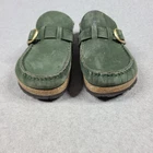 These do have some scuffs so please see ALL pictures before purchasing. Elevate your shoe game with these stylish and comfortable Birkenstock Buckley clogs in a beautiful green suede leather. These are the perfect shoes for women who love to walk and explore the outdoors, with a closed toe and slip-on style that makes them easy to wear. The adjustable strap and buckle features provide a secure fit, while the low top shoe shaft style and flat heel make them comfortable for all-day wear. These clogs are made in Germany and have a shearling fabric type, with a leather lining and insole material that adds to their luxurious feel. The buckle and logo accents provide a touch of elegance, and the solid pattern and tea, outdoor, and classic themes make them a versatile addition to any wardrobe. Whether you're traveling, activewear, or just want to look stylish for a casual event, these Birkenstock Buckley clogs in size 39 and a US shoe size of 8.5 are the perfect choice.