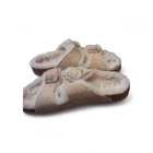 The product is a pair of Birkenstock Girls Youth Size 32 Arizona Shearling Suede Sandals in a lovely rose color. These sandals are designed for young girls, with a slip-on style and featuring a soft shearling fabric lining. The suede upper material provides durability and comfort, making them perfect for everyday wear. The sandals have a charming rose theme that adds a touch of sweetness to any outfit. Perfect for adding style and functionality to a little girl's wardrobe.