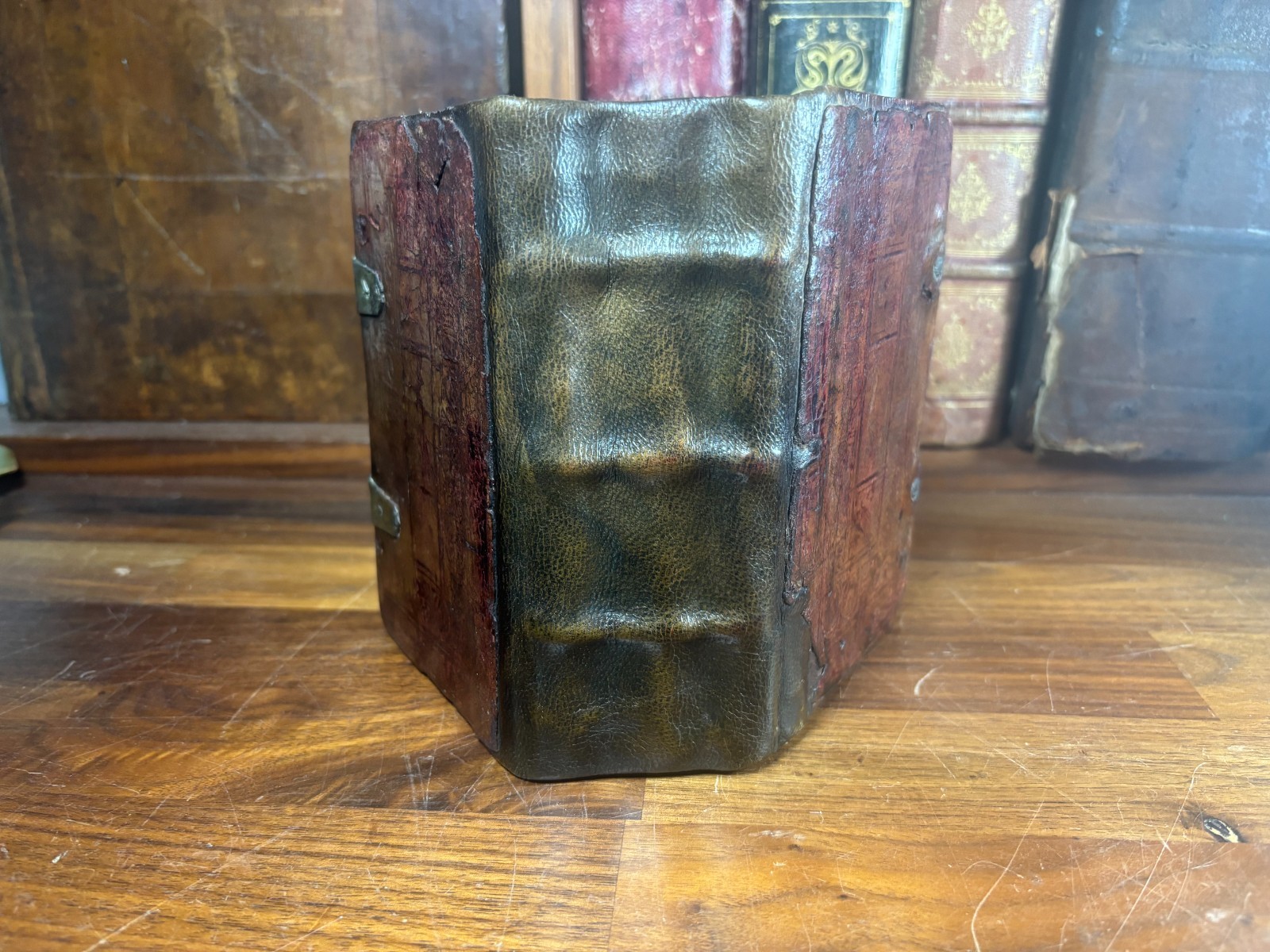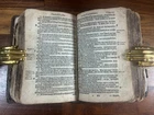 TITLE: 1615 BISHOPS’ NEW TESTAMENT Robert Barker Printing Very Late Bishops Bible NT & Psalms Herbert 344 Early English Bible DESCRIPTION "1615 The New Testament of our Lord and Saviour Jesus Christ Printed at London by Robert Barker Bishops’ Text Herbert 344" Offered here is an exceptionally rare 1615 Bishops’ Version New Testament , printed in London by Robert Barker , Printer to the King’s Majesty. This edition is catalogued as Herbert 344 , and represents one of the latest surviving printings of the Bishops’ Bible tradition , produced four years after the King James Version had already become the newly authorized text. This is a New Testament–only issue (as Herbert notes), often produced in small “pocket” format for personal use, typically bound with a Book of Psalms , as this copy is. Bishops’-text NTs from this late date are extremely scarce , since the translation was already being phased out and replaced by the KJV. A remarkable survival from the final years of pre–King James Version English biblical printing. BIBLIOGRAPHICAL DETAILS Title: The New Testament of our Lord and Saviour Jesus Christ Translation: Bishops’ Version Printer: Robert Barker , London Date: 1615 Reference: Herbert 344 Format: Small-format / pocket-sized Contents: New Testament Bishops’ text Psalms CONDITION Binding: Sympathetic binding with original cover panels/newer spine, has some metal work (latches no longer apparent, however fittings are still there) NT Title page: missing Book of Psalms title page: Missing lower half Interior condition: foxing, staining, Notes, marks, or inscriptions: "John Setten His Book John Setten His Book April 8 1780" Collation: Collates: [4 preliminary leaves], A–Z8, Aa–Ee8, Nn4. Lacking the main title page and one leaf of text (Ee6). The first four leaves of Matthew show ragged wear with some paper loss . Five additional leaves ( G7–G8 and H1–H3 ) also exhibit ragged edges and small areas of loss . Leaves L5 and L7 have clean tears without loss , and L8 has a small clean tear , likewise without loss. Aside from the faults noted above, the text remains generally legible and in solid reading condition . Expected corner creases, marginal thumb-soiling, and occasional minor blemishes or reading wear are present, but the majority of the volume is in reasonably good, usable condition . History of early 17th-Century England: This New Testament was printed during a pivotal moment in English religious and political life. The year 1615 falls under the reign of King James I (1603–1625) , a period marked by: The rise of the King James Bible (first printed in 1611) Increasing uniformity in the Church of England Widespread use of personal devotional books in small, portable formats The last echoes of Elizabethan religious printing traditions The early 17th century saw London’s printing industry shifting rapidly toward the newly authorized KJV , yet older translations such as the Bishops’ Bible continued in circulation for a few more years—especially in small-format, affordable editions. This 1615 volume is therefore part of the final transitional years between the older Elizabethan Bible and the now-standard KJV. History of the Bishop's Bible: The Bishops’ Bible was first published in 1568 under the direction of Archbishop Matthew Parker , who sought a Church of England alternative to the popular but Calvinistic Geneva Bible . It was the official Bible for use in English churches throughout the reign of Queen Elizabeth I. Key features of the Bishops’ Bible tradition: First issued in 1568 , revised in 1572 Printed in large folios for church reading and smaller editions for private use Served as the base text for the translators of the King James Version (1611) Often printed in black-letter (Gothic) type , even into the 17th century Gradually displaced by the King James Version after 1611 By 1615 , when this New Testament was printed, the Bishops’ text was nearly extinct. Only a handful of small-format reprints—like this very copy—survived as late commercial remnants of the Elizabethan biblical printing tradition. Your volume is part of the last generation of Bishops’-text New Testaments ever printed . About Robert Barker: Robert Barker (d. 1645) was one of the most significant printers in English history. His press produced: The 1611 King James Bible (both the “He” and “She” variants) Numerous reprints of the Bishops’ Bible, Geneva Bible, and small-format Testaments Statutes, proclamations, and official royal documents As King’s Printer , Barker held the exclusive privilege of printing the Bible in England. His London press was enormous by the standards of the day, filled with: Black-letter type inherited from earlier Elizabethan printers Decorative woodcut borders and initials carried over from 16th-century Bible production Skilled compositors who produced everything from folio Bibles to miniature NT editions A 1615 Barker-printed Bishops’ New Testament is therefore both: A relic of the old Elizabethan biblical tradition , and A product of the press that created the King James Bible A highly desirable intersection for collectors of early English scripture. Dimensions: Weight - 515g Height - 15.5cm Width - 10cm Thickness - 6.5cm