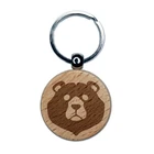 Black Bear Head Engraved Wood Round Keychain Tag Charm