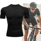 (Black L)Men's Cool Dry Short Sleeve Compression Shirts Sports T Shirt FA