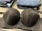 This Black Padded Push Up Bra in size 110C features a Floral Lace pattern and wide straps for added comfort and support. Designed with a hook & loop closure, underwired cups, and a 90% Polyester & 10% Elastane fabric composition, this bra offers a flattering fit. The lace accents add a touch of femininity to the black design, making it a stylish and functional choice for plus-size women.