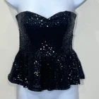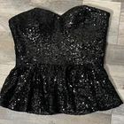 Forever 21 Black Sequin Corset Peblum Bustier Small Y2K Holiday Witchy Dark Feminine Fully lined All over sequin Zip closure Gently used. Good condition. goth, 90s, Y2K, black, witch, witchy, gothic, dark feminine, festival, cosplay, sparkly, New Years, party, sexy