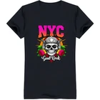 Black T-Shirt with Design Flowers & 'NYC Good ' Print