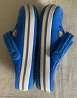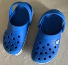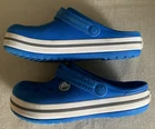 Unveil your little one's playful side with these medium blue Crocs Crocband foam clogs, crafted for kids' size 11. Designed with a blend of comfort and fun, these clogs feature a durable synthetic upper and a cushioning foam insole to provide a soft, supportive step. The lightweight construction ensures easy movement, while the slip-resistant design offers stability during various activities like walking, beach outings, or school days. The classic slip-on style makes these clogs easy to wear, and the breathable material keeps feet cool and refreshed. Ankle straps with a logo accent add a touch of style, and the solid blue color paired with a subtle pattern make these shoes a versatile addition to any young trendsetter's wardrobe. Whether it's spring or summer, these Crocs are perfect for carefree days.