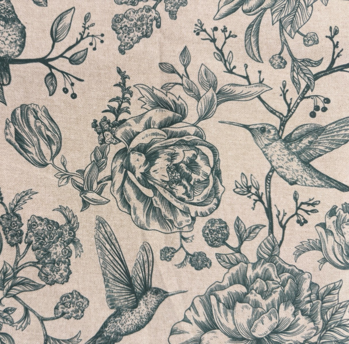 Blue Green Birds Toile Blue Green Beige Length sold by the metre, half metre or sample Width 140cm / 54" wide Linen 10% Cotton 90% Pattern repeat 34cm A lovely quality soft linen in beige with a stunning bird and flora toile design in blue green teal Ideal for curtains, blinds, cushions and crafts, etc... Uk postage is free , International postage is eBays global shipping Visit my ebay shop we have lots of beautiful bargains