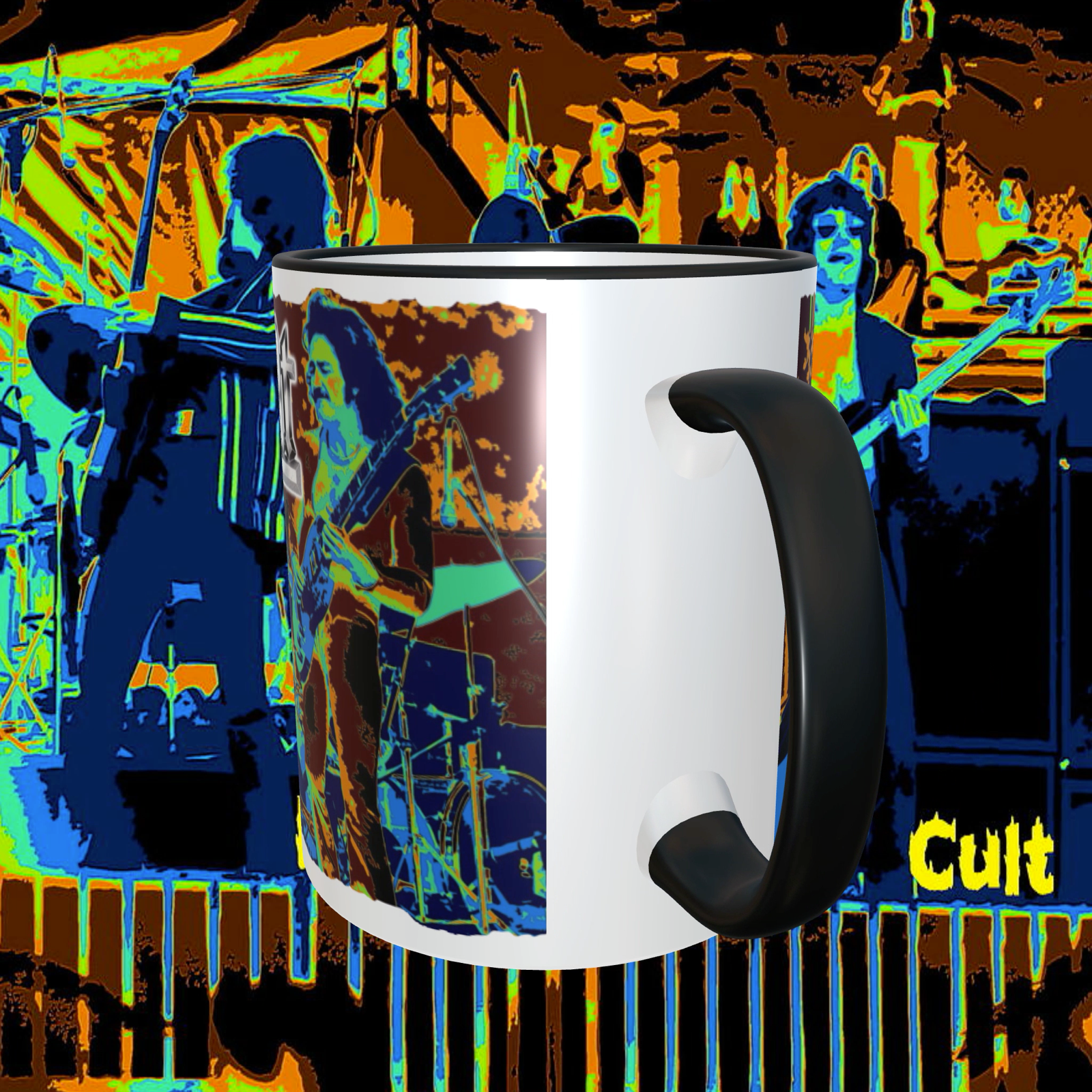 Blue Oyster Cult 11oz Ceramic Coffee Mug, Handle and inside are Black NEW Dishwasher Safe Shipped with USPS