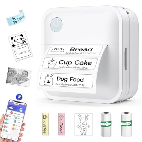 Mini Portable Sticker Printer Label Maker with 8 Rolls Paper