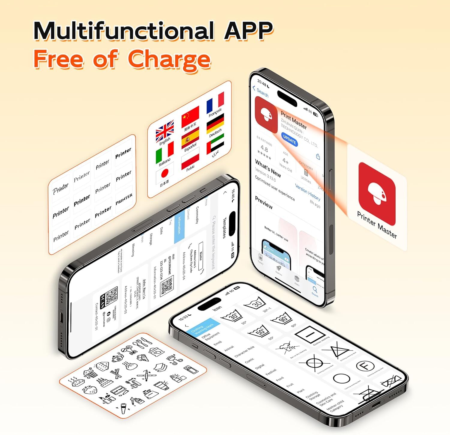 About this item Ultra-Portable & Wireless Thermal Printer - This printer features a compact, slim design with a built-in 2200mAh rechargeable battery, making it a portable label printer perfect for on-the-go use. Seamlessly connect via Bluetooth to mobile devices (Android/iOS) or USB to PCs, ensuring wireless printer flexibility for home, office, or logistics settings. High-Speed 4x6 Shipping Label Printer - Designed for efficiency, this 4x6 shipping label printer delivers professional-grade performance with 203 DPI resolution, ensuring crisp barcodes, QR codes, and addresses. Its thermal technology supports rapid printing for shipping, warehousing, and retail needs, boosting productivity without delays. Inkless & Cost-Effective Thermal Printing - As an inkless printer, it eliminates ink and toner costs using advanced thermal direct technology. Compatible with roll or fanfold labels (1.57"–4" width), it’s ideal for businesses seeking eco-friendly, low-maintenance solutions for shipping labels, inventory tags, and organizational tasks. Multi-Device Bluetooth Label Printer - This Bluetooth label printer works effortlessly across devices: pair wirelessly with smartphones/tablets via the "Print Master" app or connect via USB to PC/ laptop (Compatible with Windows10/11, MacOS, Chrome OS, and Linux systems). Smart Customization - Unlock limitless creativity with the "Print Master" app, offering 1,500+ icons, 110 fonts, and 200+ templates. Print shipping labels, branding logos, or home organization tags in 20 languages. Product dimensions: 2.44"D x 10.31"W x 1.26"H