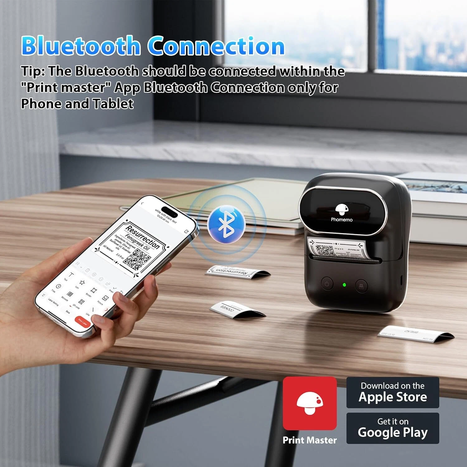 Product Description Phomemo M108 Label Maker Machine-Barcode Label Printer, Portable Sticker Maker for Price Tag, Logo,Address, Mailing, Home, Office & Small Business, Compatible with Phones&PC Product Specifications Product Name : Easy to Use Label Maker Printer - Mini Bluetooth wireless thermal mobile label printer Connectivity : - Bluetooth: One-click connect and printing - Bluetooth Version: 4.0 - Range: Up to 33 feet (10 meters) - Connection Time: Approximately 5 seconds Compatibility : - Devices: Mobile phone - Supported Systems: Windows / Mac OS / Chrome OS Printing Technology : Thermal Brand : Phomemo Label Templates : - Variety: Yes - Customizable: Yes - Types: Clothing labels, price labels, cable labels, jewelry labels, address labels, folder labels, etc. Label Width Range : 20mm~50mm Max Printable Width : 48mm Printing Performance : - Output Type: Black - Print Media: Labels - Resolution: 203dpi (8 dots/mm) - Ink-less: Yes - Smooth & Fast Printing: Yes - Adjustable Paper Holder: Yes - Batch Printing: Yes Powerful APP : Print Master OCR (Optical Character Recognition) : - Recognition Time: 5 seconds - Function: Convert text in images directly into editable text Additional Features : - No Ink Printing: No need to use ribbon - Only print black and white Package includes: 1 x Pocket thermal printer 1 x USB Cable 1 x Roll Label (size:40x30mmx100pcs) 1 x User Manual 1 x Packing Box