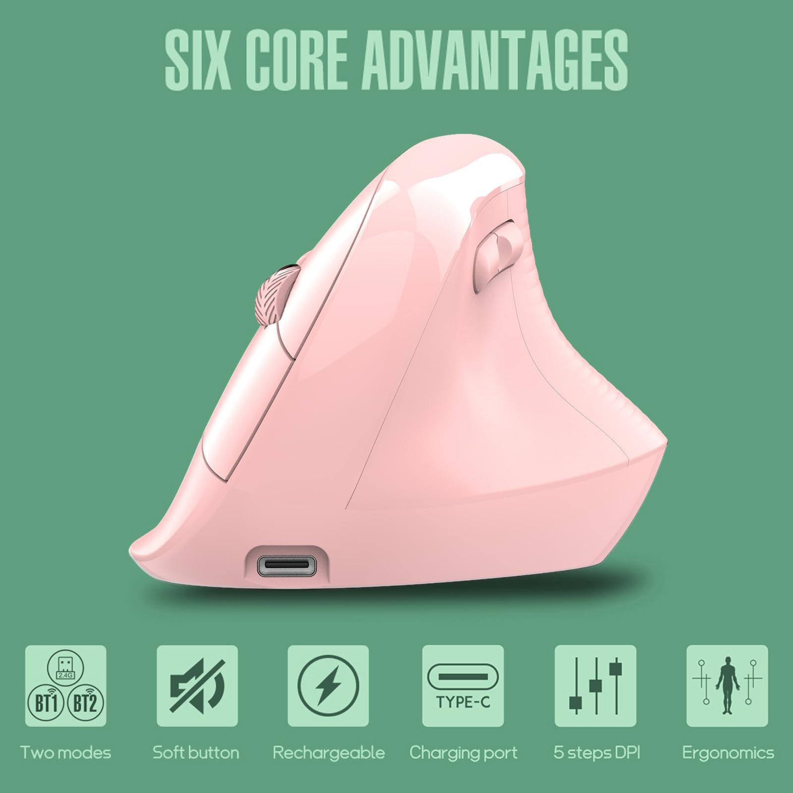 Innovative Ergonomic Design - This versatile vertical mouse is comfortable and smooth to use in a natural position and fits your usage habit, preventing soreness and fatigue in your wrist and shoulder from long -term online working. ergonomic mouse size: 11.2*8.2*7.4cm (4.41*3.23*2.91 inch), fitting almost all hands and especially friendly to Medium to Large right-hand usage. BT Dual Channel and 2.4GHz Mouse - Bluetooth USB C multi device mouse supports Dual BT Channel, you can switch freely in 2 Bluetooth devices by pressing the BT Channel Matching. Or connecting via USB A/ USB Receiver add Type-C Adapter, only pull Nano USB Receiver under earth the mouse and plug into computer, which is navigating your iMac a breeze. 2 side buttons(Forward/Backward) for page turning. Please Note: Side Buttons are Unavailable in macOS systerm. 5 Adjustable DPI - wireless vertical mouse with 5 DPI 1200/1600/2000/2400/4000 allows you to switch DPI up to differ setting. Range from 1200 to 2400 DPI are more suitable to daily study, work and office, while max DPI to 4000 can speed cursor on the 4K/8K screen. It can also be applicable to most multimedia devices, which can achieving to precise control and operate the multi -page efficiently. USB-C Rechargeable and Silent - The wireless rechargeable quiet mouse adopts built-in battery, energy-saving design extends the usage lifespan plus environmentally friendly. Silent ergonomic design reduces volume immensely, no longer to worry about disturbing others when working at night, which make it easier to hold over hours of work. Tailoring to text worker, accountant, designer, editor and more. 18 Months Support - Package: 1x Bluetooth Wireless Mouse(USB receiver under earth the mouse)/ 1x Charging Cable/ 1x Type C Adapter/ 1x User Manual. New to Vertical Mouse will adapt to for a while, after using you will love it. If there is any issue with Wireless Mouse, please contact us at any time, we will help you solve the problem. From the date of order, you'll get 18-Month quality guarantee.