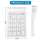 Specifications Keys: 22 Color: Black Weight: 87g / 0.19 LB Item Dimensions L x W x H : 12.5 x 9.5 x 2.5 CM /5.31 x 3.74 x 0.99 inches Compatible System and Device: Windows XP, Windows Vista, Windows 7 / 8 / 10 Laptop, Mac OS. Note : Note: The Numeric keypad is Not fully compatible with Mac OS, Macbook Air/Pro, IPAD. The Calculator Shortcut can not work with Mac OS. And Ins can not work with Mac OS when Numlock is closed. Package List: 1 x Bluetooth Wireless Numeric Keypad 1 x User Manual BT Wireless Ten Key Numeric Pad: Macro Number Key Pad supports NumLock, ESC, Tab, Delete etc. With shortcuts key which can open the computer calculator directly. The Numlock Allow you Move the Cursor without Mouse. NOTE: The Calculator Shortcut can not work with Mac OS. Stable BT 3.0 Connection: Cordless 10-Key Digit Keypad Support Bluetooth 3.0, Cable-free and Clutter-free Connection, no Delays and Dropouts, Fast Data Transmission, Range up to 8 Meters. This Alphanumeric Keypad is a Perfect Add-on Extension to your Laptop and Compact Keyboard for Data Entry. Widely Compatibility: Mini Blue Tooth Wireless Number Keypad can work with Windows 10/8/7, Surface, Laptop, Desktop, MAC OS, Notebook, Chromebook, Android. The External Numberpad is an ideal Choice for Accountant Work on Excel, Teachers Entering Grades, Office for Data Input, etc. NOTE: The Numeric keypad is Not fully compatible with Mac OS, Macbook Air/Pro, IPAD. The Calculator Shortcut can not work with Mac OS. And Ins can not work with Mac OS when Numlock is closed. Portable and Comfortable to Use: Our Ten Key Small Number Pad only 87g/0.l9b, 5.31 x 3.74 x 0.99 inches; Lightweight and Portable. Easily put this Travel Attachment Num Pad into your Laptop Bag, Backpack, Suitcase, even Pockets without Taking Space. Ergonomic Design Provides Comfortable Smooth Typing Experience and Reduces Strain. The Compact Wireless Pinpad is great for Home, Office, Traveling, Business trip, and more. Quite and Touch Comfortable: Made of high quality ABS Material which offer great comfortable touch and precise control, good resilience fast response and reduce the press sound. It also has auto sleep function, lower power consumption, reflect energy saving. Press any key to awake up the keypad. Power Supply by 2x AAA Battery ( not included ).