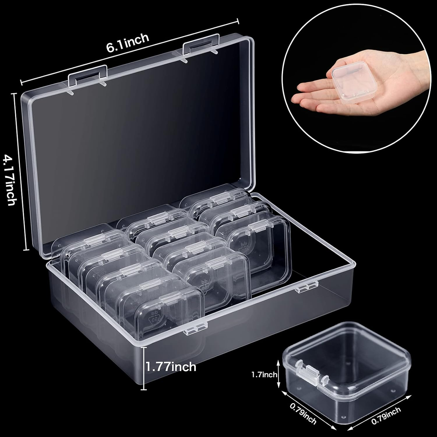 Store New Arrivals Add to Favorite View Feedback Contact Blulu 12 Pieces Plastic Clear Storage Box Organizer with Snap-Tight Closure Latch Mini Small Storage Containers Cases with Hinged Lid Hobby Modular Craft Supply Satchel (1.7 X 1.7 X 0.79 Inch) Description Item model number Blulu-Storage Cases-07 Capacity 1.8 Pounds Number of Items 12 Closure Type Snap Pattern Solid Country of Origin China Unit Count 1 Count Number of Compartments 1 Batteries required No Brand Blulu Material Plastic Maximum Weight Recommendation 1.8 Pounds Manufacturer Blulu Item Package Quantity 13 Water Resistance Level Water Resistant Item Weight 1 pounds Opening Mechanism Hinge Special Feature Lockable Color Clear Shape Rectangular Number of pieces 12 Product Dimensions 1"L x 1"W x 1"H Size 1.7 x 1.7 x 0.79 Inch You will get: there are 12 pieces of plastic storage cases and 1 piece of rectangle clear craft supply case in the package, sufficient quantity for your daily use and replacement Suitable sizes: each mini clear plastic storage container is about 3.8 x 3.8 x 1.8 cm/ 1.5 x 1.5 x 0.73 inches, and each rectangle clear craft supply case is approx. 13.3 x 8.4 x 4 cm/ 5.2 x 3.3 x 1.6 inches; Proper sizes for you to store small items, and you can put these mini clear plastic storage containers into the rectangle case, which can protect the mini cases from scratches or loss Thoughtful design: each transparent box is designed with a hinged lid, prevents your items from dust and dirt, brings you much convenience, and saves your time and energy to clean it Categorizing helper: you can apply these plastic storage cases to categorize different items, and the transparent appearance helps you see the items in it clearly, ideal for you quickly and easily find what you need without opening the container Versatility: these mini clear plastic storage containers are suitable for storing beads, necklaces, bracelets, earrings, jewelry and other little items, and you can also use them to organize your small stickers, pictures and so on, which are versatile for you and you can apply them according to your preference Product Description ABOUT US We offer the best prices around on high quality products. Our E-store includes media such as books, movies, music and games while offering electronics, toys, sporting apparel, clothing, tools, general home, garden items and more. SHIPPING We are always working hard to ensure your package arrives as soon as possible. Please understand that some factors like weather, high postal traffic, and the performance of shipping companies are outside of our control. We offer free shipping to the lower 48 states and ship within 2 business days of payment, usually sooner. We do not accept P.O. Boxes. Please provide a physical address. RETURNS We offer a 30-Day Return Policy on items which you are not completely satisfied with. You have the option for a full-refund or an exchange of the item. No returns are available on items shipped outside of the USA. PAYMENT We accept PayPal. CONTACT US This page content is yet to come Please ad us to your favorite seller and visit again later Thank You CUSTOMER SATISFACTION We try our very best to make sure every customer is completely satisfied. If there's a problem, message us! We're happy to help.