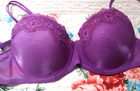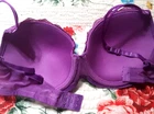 Blush purple lace trimmed bra with rhinestones size 36C. It is padded with an underwire. This is in excellent condition showing little to no signs of wear. Thanks for looking.