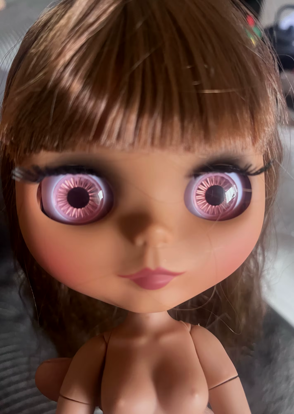 Blythe Doll Brown Hair BJD Joint Body Dark Skin Matte Face Eye Change Color Gift There are just Limited quantity available! Get yours NOW before we run out!!! Step into a world of creativity and magic with our stunning 12-inch Blythe doll! Perfect for collectors and doll enthusiasts, this Blythe doll is ready to captivate hearts with her unique charm and endless possibilities for customization. Features: ✨ Expressive Eyes: Four different eye colors and positions with a simple pull of a string, reflecting her many moods and styles. 👗 Customizable Beauty: Change her hair, makeup, and style to create a doll that’s uniquely yours. 🌈 Premium Quality: Crafted from durable, high-quality materials to ensure she stands the test of time. 📏 Perfect Size: At 12 inches tall, she's the ideal size for both play and display. Why You'll Love Our 12" Blythe Doll: Endless Creativity: Perfect for photography, crafting, and artistic projects, she’s a blank canvas for your imagination. Community Connection: Join a worldwide network of Blythe enthusiasts who share your passion and creativity. Unique Gift Idea: A thoughtful and personalized gift for birthdays, holidays, or any special occasion, sure to delight both children and adults. Bring home the magic of the 12" Blythe doll today and dive into a world where imagination knows no bounds. Embrace the charm, creativity, and joy that only a Blythe doll can offer. Order now and let the adventures begin! Dolls are selling in nude, Not including clothes and accessories.