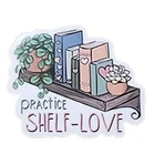 The product is a set of 10 diary, planner, or scrapbook stickers featuring cats, books, plants, reading, and bookish themes.
