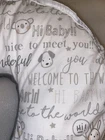 Boppy Baby Nursing Pillow Hello World Nice to Meet You! Gray White Puppy Welcome. In excellent condition, please see photos for exact details and feel free to contact me with any questions.