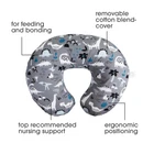 Boppy Nursing Pillow Original Support Gray Dinosaurs -Baby Support Pillow Pillow for Baby - Feeding Propping Tummy Time and Sitting Description The award-winning Boppy Original Support Nursing Pillow is a registry must-have and family favorite. Ergonomic support for nursing, bottle feeding, and bonding. Great to aid in sibling and grandparent bonding. Removable cover for easy washing. *Boppy products are rigorously tested by a third party CPSC Accredited lab, Intertek, to provide your baby with the highest quality and you with peace of mind. Formaldehyde free, phthalate free, flame retardant free, free of heavy metals, lead free, California Prop 65, meets all chemical regulations and requirements for children's products at a federal, state and local level. About Boppy Nursing Pillows This Boppy nursing pillow provides ergonomic support for breastfeeding, bottle feeding, and bonding. The c-shaped design allows for multiple feeding styles—cradle, cross cradle, football hold and bottle feeding. Aids positioning for a better latch and back relief. Machine washable for easy cleaning with removeable pillow cover for added ease. The average nursing mom spends over 35 hours per week breastfeeding. Get the tools for the job with the Boppy Original Support Nursing Pillow. The beltless design allows for an easy, one-handed placement with no fuss, and the Miracle Middle panel provides a seam-free connection with your body for a more comfortable fit for c-sections or stomach tenderness after birth. This award-winning Boppy nursing pillow is a registry must-have and a parent favorite. Small enough to easily fit in your rocking chair or glider, but big enough to give the support you need. Support for you and baby with hypoallergenic fiber fill and a removable cover to help keep your breastfeeding pillow cleaner longer. A variety of Boppy Nursing Pillow Covers to fit your style are sold separately, from cotton blends to organics, so you always have backup on laundry day. Designed for your baby's adult-supervised awake-time. This product is not for sleep. Thank you to the millions of parents who trust Boppy. This product should never be used for sleep. Our mission is to keep you feeling comfortable and confident with your decision to choose Boppy for high quality products, expert third party testing, and clear messaging. The AAP Safe Sleep Guidelines state that a baby should never be put to sleep with any pillow or plush product. Newborns should always be put to sleep on their back on a firm, flat surface free from loose blankets, pillows, stuffed toys, bumpers, and other soft items. Please always use products as intended. Created for Comfort: Designed by a mom, this nursing pillow provides relief to your arms and back by lifting your baby to a more ergonomic position when breastfeeding, bottle feeding, and bonding You have options: C-shaped design allows for multiple feeding styles—cradle, cross cradle, football hold, bottle feeding Nursing Must-Have: An award-winning registry must-have, making it the perfect gift for any baby shower Easy Care, Machine Washable: Machine washable and dryable because messes happen More Covers Available: Comes covered in a removable cover, and additional covers are sold separately so you can have backup on laundry day Awake Time-Only: This product is for baby’s adult-supervised awake-time for feeding and bonding, not for sleep Ergonomic positioning for breastfeeding, bottle feeding, and bonding Versatile positioning for the nursing style for you Top recommended product and a nursing must-have Removable cover keeps things cleaner Machine washable because, have you met a baby? Have backup with additional Boppy Brand Covers sold separately This product is for adult-supervised awake-time, not for sleep Third-party tested for safety and quality* Specifications LAW LABEL: UNDER PENALTY OF LAW THIS TAG NOT TO BE REMOVED EXCEPT BY THE CONSUMER ALL NEW MATERIAL consisting of 100% POLYESTER FIBER REG NO. CA-42095 (AR) Certification is made by the manufacturer that the materials in this article are described in accordance with law. MADE FOR: The Boppy Company, LLC 350 Indiana Street, Suite 800 Golden, CO 80401 Finished Size: 22.5 IN X 18 IN (57.15CM X 45.72CM) Net Weight of Filling Material: 1.85 LBS (0.84 kg) MADE IN CHINA Dimensions (Overall): 16 Inches (L), 20 Inches (W), 5.5 Inches thick Weight: 30 Ounces Material: Polyester Care & Cleaning: Machine Wash TCIN: 82677848 UPC: 769662032346 Item Number (DPCI): 030-05-8155 Origin: Assem In USA w/ foreign parts Baby Shower Gift, Christmas Gift for New Moms BRAND NEW Comes from a Smoke Free Home