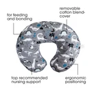 Product details This Boppy nursing pillow provides ergonomic support for breastfeeding, bottle feeding, and bonding. The c-shaped design allows for multiple feeding styles—cradle, cross cradle, football hold and bottle feeding. Aids positioning for a better latch and back relief. Machine washable for easy cleaning with removeable pillow cover for added ease. The average nursing mom spends over 35 hours per week breastfeeding. Get the tools for the job with the Boppy Original Support Nursing Pillow. The beltless design allows for an easy, one-handed placement with no fuss, and the Miracle Middle panel provides a seam-free connection with your body for a more comfortable fit for c-sections or stomach tenderness after birth. This award-winning Boppy nursing pillow is a registry must-have and a parent favorite. Small enough to easily fit in your rocking chair or glider, but big enough to give the support you need. Support for you and baby with hypoallergenic fiber fill and a removable cover to help keep your breastfeeding pillow cleaner longer. A variety of Boppy Nursing Pillow Covers to fit your style are sold separately, from cotton blends to organics, so you always have backup on laundry day. Designed for your baby's adult-supervised awake-time. This product is not for sleep. Thank you to the millions of parents who trust Boppy. Looking for extended sizes? Check out the Boppy Best Latch Support Nursing Pillow or the Boppy Anywhere Support Nursing Pillow for a perfect fit. This product should never be used for sleep. Our mission is to keep you feeling comfortable and confident with your decision to choose Boppy for high quality products, expert third party testing, and clear messaging. The AAP Safe Sleep Guidelines state that a baby should never be put to sleep with any pillow or plush product. Newborns should always be put to sleep on their back on a firm, flat surface free from loose blankets, pillows, stuffed toys, bumpers, and other soft items. Please always use products as intended. Created for Comfort: Designed by a mom, this nursing pillow provides relief to your arms and back by lifting your baby to a more ergonomic position when breastfeeding, bottle feeding, and bonding You have options: C-shaped design allows for multiple feeding styles—cradle, cross cradle, football hold, bottle feeding Nursing Must-Have: An award-winning registry must-have, making it the perfect gift for any baby shower Easy Care, Machine Washable: Machine washable and dryable because messes happen More Covers Available: Comes covered in a removable cover, and additional covers are sold separately so you can have backup on laundry day Awake Time-Only: This product is for baby’s adult-supervised awake-time for feeding and bonding, not for sleep Boppy On Jul 29, 2024 at 10:43:39 PDT, seller added the following information: