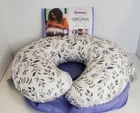 Enhance your nursing experience with the Boppy Nursing Pillow Original Support. This U-shaped pillow in gray and white with leaves pattern is perfect for breastfeeding and feeding your baby comfortably. The pillow filling is made of soft polyester and comes with a removable polyester cover for easy washing. The Boppy Nursing Pillow is a must-have for any new mother. Its unique design provides the perfect support for your baby's head and body while you breastfeed or bottle-feed. It is also great for tummy time and supporting your baby as they learn to sit up. Get this pillow today and enjoy a comfortable and convenient nursing experience. Excellent condition Stored in smoke-free environment No stains, no indication it has been used No smells or perfumes