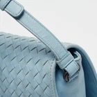 Swap that regular everyday tote with this charming crossbody bag from the house of Bottega Veneta. It features an exterior with the Intrecciato weave pattern on it. It comes fitted with an adjustable shoulder strap and a full flap style. The spacious interior with suede lining can hold all your daily essentials with great easeCertified by The Luxury Closet - This item has gone through a detailed authentication process overseen by our experts. We offer a lifetime guarantee of authenticity on all our items. Import duties, taxes and charges are not included in the item price. These charges are the buyers responsibility. Please check with your country’s customs office to determine what these additional cost will be prior to buying. Our eBay Store About Us Contact Us Add to Favorite Sellers Bottega Veneta Light Blue Intrecciato Leather Flap Crossbody Bag $426.8 Swap that regular everyday tote with this charming crossbody bag from the house of Bottega Veneta. It features an exterior with the Intrecciato weave pattern on it. It comes fitted with an adjustable shoulder strap and a full flap style. The spacious interior with suede lining can hold all your daily essentials with great ease Product Details Brand Color Blue Dimensions Height: 18 cm, Width: 6 cm, Length: 21 cm Material Leather Size Outsole Width Outsole Length Heel Height Includes The Luxury Closet Packaging Certified by The Luxury Closet This item has gone through a detailed authentication process overseen by our experts. We offer a lifetime guarantee of authenticity on all our items. How We Check The in-house team of experts at The Luxury Closet is highly trained to verify the authenticity and the condition of the luxury products. They ensure that only 100% authentic items are put on sale.The evaluation process is unique with its own mix of assessment criteria and differs according to the category. Each item is evaluated based on the following combination of hallmarks, hardware, stitching, symmetry, material, craftsmanship, stamping, codes, hologram stickers, and packaging. Our authenticators also check if the items have been modified or amended (e.g., aftermarket diamonds, replaced batteries, repaired bags, etc.) International Buyers Import duties, taxes and charges are not included in the item price. These charges are the buyers responsibility. Please check with your country’s customs office to determine what these additional cost will be prior to buying.