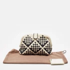 The Lauren 1980 clutch by Bottega Veneta was named after Lauren Hutton, who carried it in the movie American Gigolo. The soft, Intrecciato woven leather clutch was a big hit then, and its many versions are still selling hot today. This beauty in off white and black Intrecciato leather clutch has a frame top with a tab closure. The interior is lined with suede.Certified by The Luxury Closet - This item has gone through a detailed authentication process overseen by our experts. We offer a lifetime guarantee of authenticity on all our items. Import duties, taxes and charges are not included in the item price. These charges are the buyers responsibility. Please check with your country’s customs office to determine what these additional cost will be prior to buying. Our eBay Store About Us Contact Us Add to Favorite Sellers Bottega Veneta Off White/Black Intrecciato Leather Lauren 1980 Clutch $1587.3 The Lauren 1980 clutch by Bottega Veneta was named after Lauren Hutton, who carried it in the movie American Gigolo. The soft, Intrecciato woven leather clutch was a big hit then, and its many versions are still selling hot today. This beauty in off white and black Intrecciato leather clutch has a frame top with a tab closure. The interior is lined with suede. Product Details Brand Color White Dimensions Height: 18 cm, Width: 7 cm, Length: 25 cm Material Leather Size Outsole Width Outsole Length Heel Height Includes Original Dustbag, Pocket Mirror Certified by The Luxury Closet This item has gone through a detailed authentication process overseen by our experts. We offer a lifetime guarantee of authenticity on all our items. How We Check The in-house team of experts at The Luxury Closet is highly trained to verify the authenticity and the condition of the luxury products. They ensure that only 100% authentic items are put on sale.The evaluation process is unique with its own mix of assessment criteria and differs according to the category. Each item is evaluated based on the following combination of hallmarks, hardware, stitching, symmetry, material, craftsmanship, stamping, codes, hologram stickers, and packaging. Our authenticators also check if the items have been modified or amended (e.g., aftermarket diamonds, replaced batteries, repaired bags, etc.) International Buyers Import duties, taxes and charges are not included in the item price. These charges are the buyers responsibility. Please check with your country’s customs office to determine what these additional cost will be prior to buying.