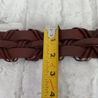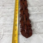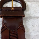Embrace the spirit of the '70s with this women's large brown braided leather belt, designed to add a touch of retro charm to any outfit. The belt features an adjustable strap, ensuring a comfortable fit for waist sizes 36-38, and is adorned with a distinctive buckle that complements its bohemian flair. Crafted with quality leather and boasting a wide width for durability, this belt is a perfect accessory for those who love to make a statement. The festival, hippie, and peasant themes are seamlessly blended with a gypsy, Bohemian, and retro aesthetic, creating a piece that's not only stylish but also imbued with a sense of history. Each belt is handmade, guaranteeing uniqueness and a personal touch.