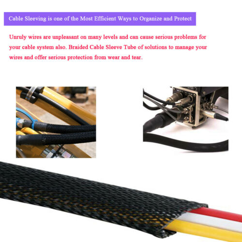 morethink , as an expert in the field of cable management,insist on providing customers with the top quality wire management products. Our cable management is used to wrap and protect wires & organize cables & hide and conceal wires in many application, e.g. Automotive,electronics, home and office etc. Expandable Braided Cable Sleeving - Management & Protection Cabes / Wires. What is Expandable Braided Cable Sleeving? Expandable braided cable sleeving is used as an alternative to heatshrink tubing. The difference between expandable cable sleeving and heat-shrink tubing is that expandable sleeving doesn't require any heating making it convenient, cost-effective and easy to use. The open weave braiding of this cable sleeving simply expands over the cables and components and contracts to provide a tight-fitting cover. The open weave of the sleeve also allows you to examine the wires underneath. Braided sleeving protects wires and cables from damage caused by abrasion from sharp edges, high impacts, and vibration. Cable sleeving, depending on the material used, also gives the cable protection from chemicals and solvents. Adjustable Length & Easy to Install. With our top quality cable concealer,You can easily hide cables and cords.Compared to other on-wall cord cover raceway, our cable hider is no glue , no break the wall and easy to replace. Protect PETS from Chewing Cords ,and will leaveit alone. Worked perfectly for cleaning up wiring on our home theater system. You Can Multiple Sizes & Length! Premium Braided Expanding Cable Sleeving Wiring Harness Perfect for Industrial, Automotive, Household,and Marine Applications Description Great for wrapping power/ground cable 100% Brand New Protect Wires from abrasions and heat Provides a nice look for a clean install Easy to bend Expandable Professional Installation is Highly Recommended No Instruction Included Fitment Pls Confirm the item if it matches your vehicle before you purchase Package including Shown As The Pictures Our Braided Cable Sleeing Wrap resistant to various abrasions, reduct damage,suitable for various electric insulation, efficiently arranges and protects the cables, ensures the cable management to be neat and clean/Insulation Sealing Wear-Resistant Features: ★Great for wrapping power/ground cable. ★Protect cables from wear & high temperature. ★Prolong service life of cable. ★Very easy to bend. ★Ultra expandable (150% of original size). ★Gives an attractive look with a clean install We are the direct source. We do wholesale for small businesses and manufacturer(s). Please call or send us a message through the eBay messaging system for a quote for wholesale pricing for rolls and bulk orders.
