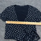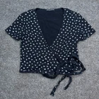 Brandy Melville Blouse Top Womens Size Medium Navy Blue Floral Open Wrap