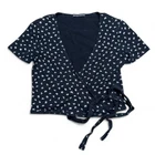 Season: Fall, Spring, Winter Department: Women Sleeve Type: Casual Sleeve Size: M Fit: Regular Pattern: Floral Material: Cotton Sleeve Length: Short Sleeve Style: Basic Fabric Type: Woven Handmade: No Type: Blouse Personalize: No Vintage: No Theme: Classic Garment Care: Machine Washable Occasion: Casual Features: Open Closure: Tie Color: Blue Accents: Strap Size Type: Regular Brand: Brandy Melville Neckline: V-Neck