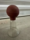 This antique breast pump glass nursing bottle with rubber ball suction is a rare find for collectors of medical antiques. The bottle is made of high-quality glass and has a unique design that makes it stand out from other nursing bottles. The rubber ball suction ensures that the bottle is securely held in place, making it easy for babies to feed comfortably. This original piece is perfect for anyone who wants to add a touch of history to their collection. The bottle was manufactured in the pre-1930 era, making it a valuable addition to any antique collection. Whether you are a collector or a history enthusiast, this antique breast pump glass nursing bottle is a must-have.