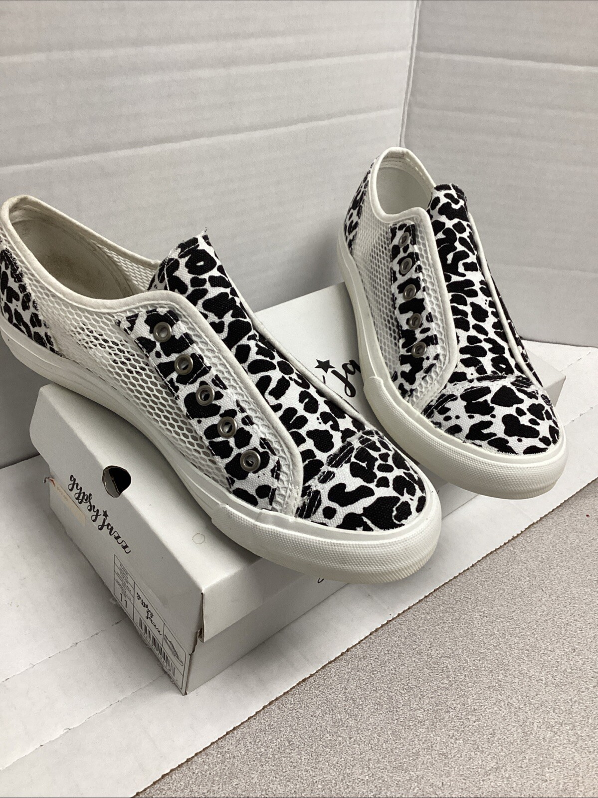 Step onto the court with confidence in these stylish Animal Spots Canvas and Mesh Tennis Shoes. Designed for women with a passion for fashion and a taste for comfort, these shoes feature a breathable mesh upper and a soft canvas lining, ensuring your feet stay cool and comfortable throughout the match. The spotted pattern adds a playful touch to your outfit, while the durable construction stands up to the demands of the game. Whether you're serving, volleying, or sprinting across the court, these size 11 shoes offer the support and style you need to make your next match a memorable one.