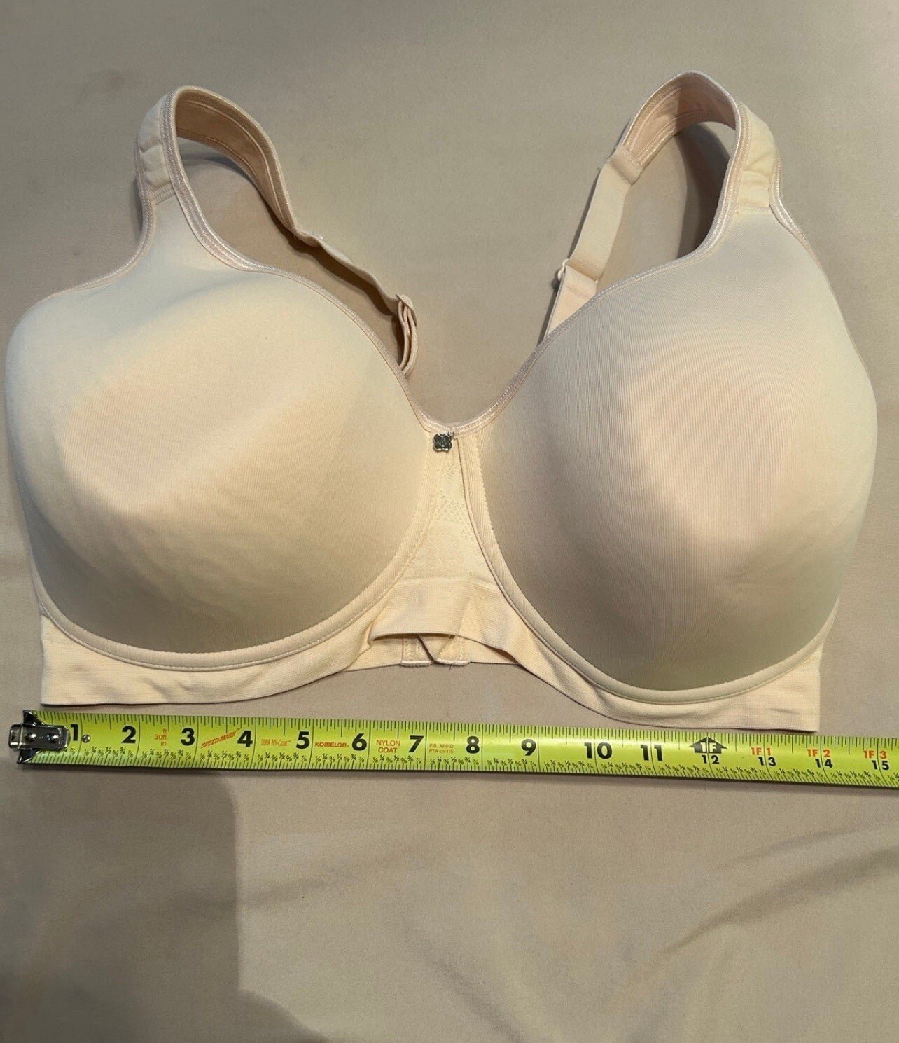 This is a Breezies cream-colored T-shirt bra in size 42DD for women. It features a solid pattern with a seamless design for a smooth look under clothing. The bra has underwiring for added support and a hook and eye closure for easy wear. With its comfortable fit and classic style, this Breezies T-shirt bra is a practical and essential addition to any woman's wardrobe.