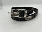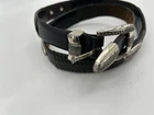Accessorize with sophistication using the Brighton Black Leather Braided Belt, a timeless addition to any wardrobe. This belt, crafted for women and boasting a size 38", features a classic 1" width that pairs effortlessly with a variety of outfits, whether it's for a casual day out or a more formal occasion. Braided leather accents. This is an older belt does show wear on silver.