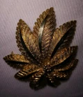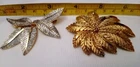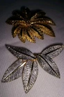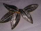 Silver Color Fine Floral Leaf Brooch Aurora Borealis Blue Rhinestones in Middle