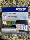 Brother LC30474PKS XXL Ink cartridges in cyan, yellow, magenta, and black are genuine/original products compatible with Brother printers. The model specified is Brother LC30474PKS XXL.