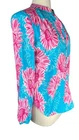 Measurements: armpit to armpit 20”, length 26” Elevate your wardrobe with this stunning Buckhead Betties blouse featuring a vibrant floral pattern in shades of blue and pink. The flowy tunic top has a flattering V-neckline and long sleeves with gathered cuffs for a touch of elegance. The blouse is made of high-quality polyester material and has a pleated back with button closure for added style and comfort. This versatile blouse is perfect for any occasion, from casual outings to business meetings to cocktail parties. The bohemian and classic theme of the blouse makes it a must-have in your wardrobe. It's easy to care for and can be hand-washed only. Add this beautiful Buckhead Betties blouse to your collection today!