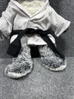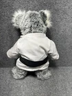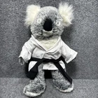 This 15-inch Build-A-Bear Workshop plush toy features a cute koala bear dressed in a karate outfit. The bear has black eyes and gray fur, and it comes with three items included: a koala hat, a karate outfit, and a pair of black boots. This original, licensed reproduction is perfect for all occasions and would make a great addition to any Build-A-Bear collection. The bear is not antique or vintage, but it is a single unit with a plush material. It is not handmade or personalized, but it features clothes and is part of the Build-a-Bear franchise. The toy was manufactured in China between 2010 and 2019 and is categorized as Dolls & Bears, Bears, Clothing & Accessories, and Bears.