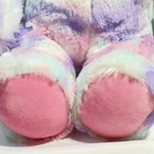 This is a 17-inch Build-A-Bear Workshop stuffed animal cat with pastel tie-dye pink and purple swirl plush. It has purple eyes and is retired from the Rainbow collection. The cat is made of plush material and is an original, licensed reproduction from Build-A-Bear. It is without packaging and was manufactured in 2017 in the United States.