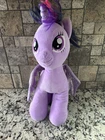 This listing is for a rare and highly sought-after Build-A-Bear Workshop My Little Pony plush bear. The bear is 16 inches in size and features a beautiful purple color with Twilight Sparkle's signature pink and purple stripes. This particular bear is a retired collectible item that was originally released in 2013. The bear is made of high-quality plush material and is perfect for any fan of My Little Pony or Build-A-Bear Workshop. This item is in excellent condition and comes from a smoke-free home. Bid now to add this unique and beloved item to your collection!