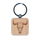 Bull Skull Engraved Wood Square Keychain Tag Charm